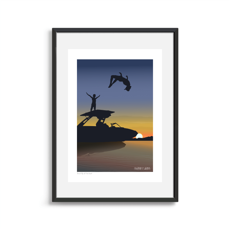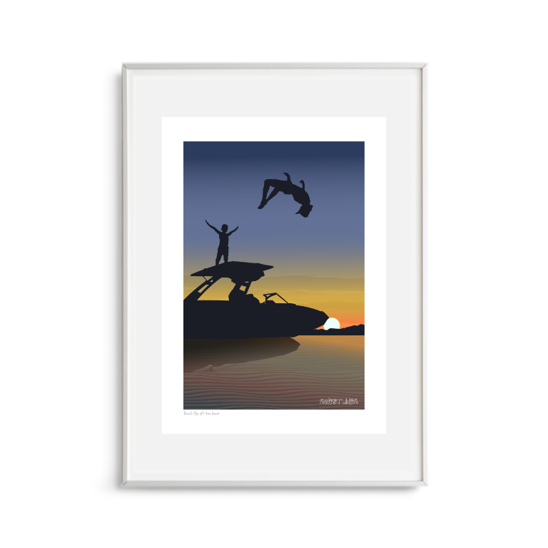 Back flip off the boat Art Print