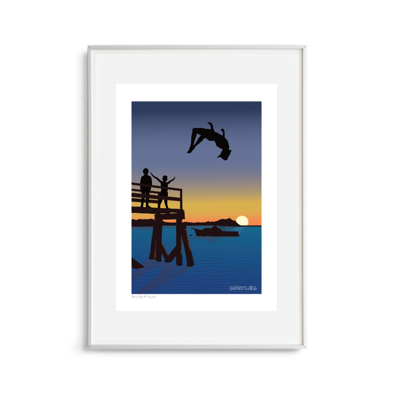 Back flip off the pier Art Print