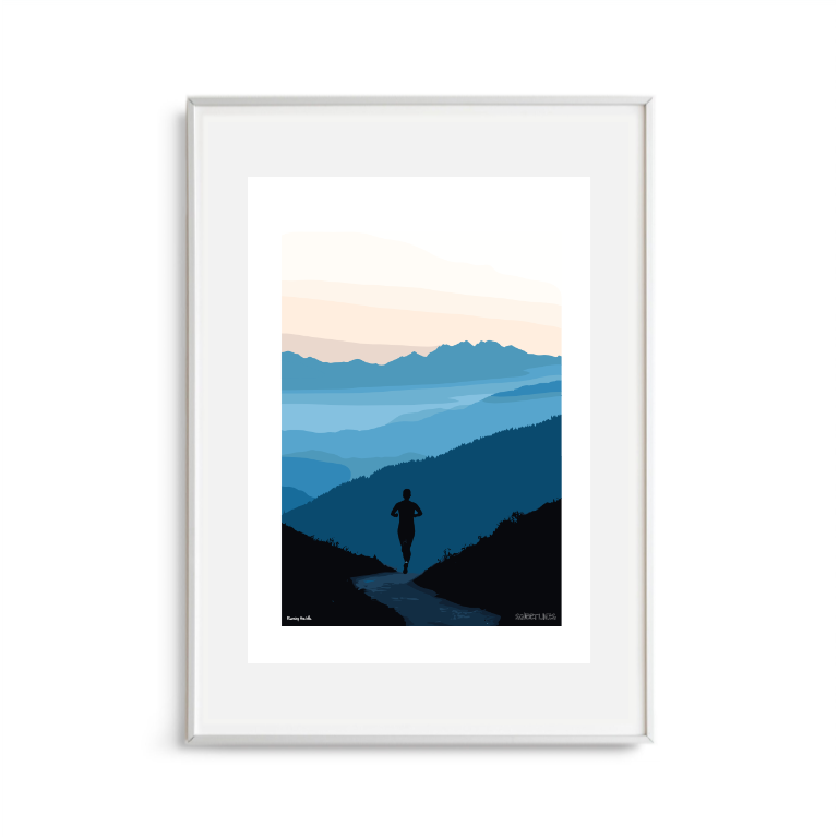 Our designs are available in A4 and A3 sizes either as a high quality print or framed in a choice of 3 colours, black, white and natural wood.